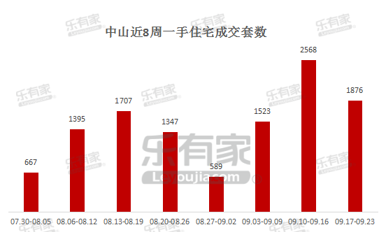 9月第三周中山一手住宅网签1876套,环比下跌27%